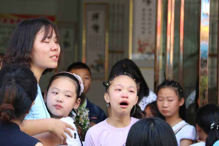 (孩子抱着志愿者哭)