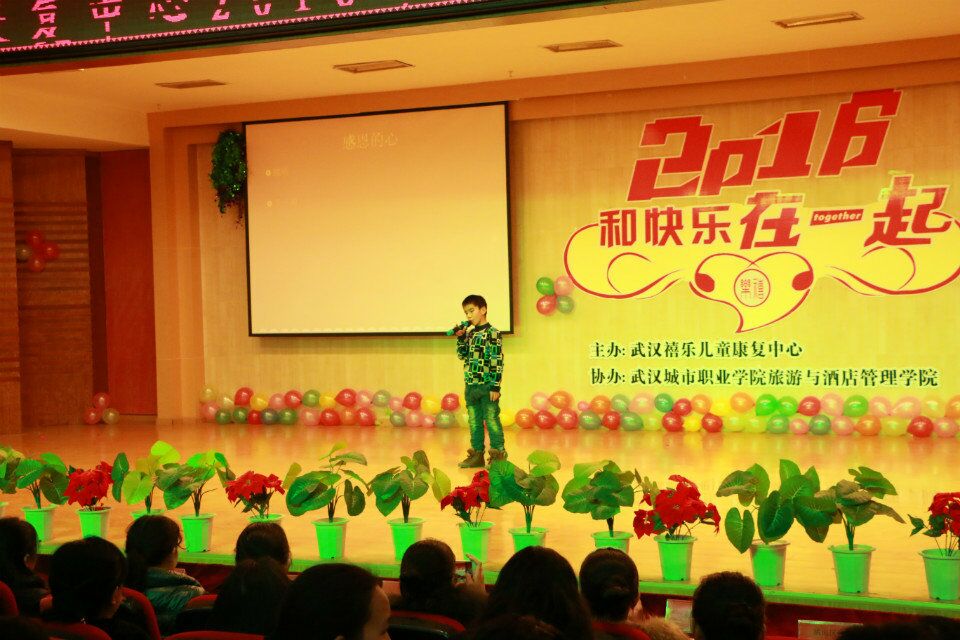 (通讯员:熊思杨;摄影:钟宁)12月22日下午两点,由禧乐儿童康复中心主办,武汉城市职业学院承办的禧乐元旦新春音乐会暨颁奖晚会在武汉城市职业学院学术报告厅隆重举行。此次晚会以“和快乐一起”为主题,到场嘉宾有:共青团武汉市委员副书记李先勇、武汉市教育工委纪工委书记梅德高、武汉南大长江实业投资有限公司董事长陈金尧等社会爱心会人士,湖北美术学院设计系晨曦志愿者分队、各高校志愿者分队、爱心企业代表及全体禧乐教师、家长、学生。