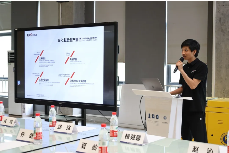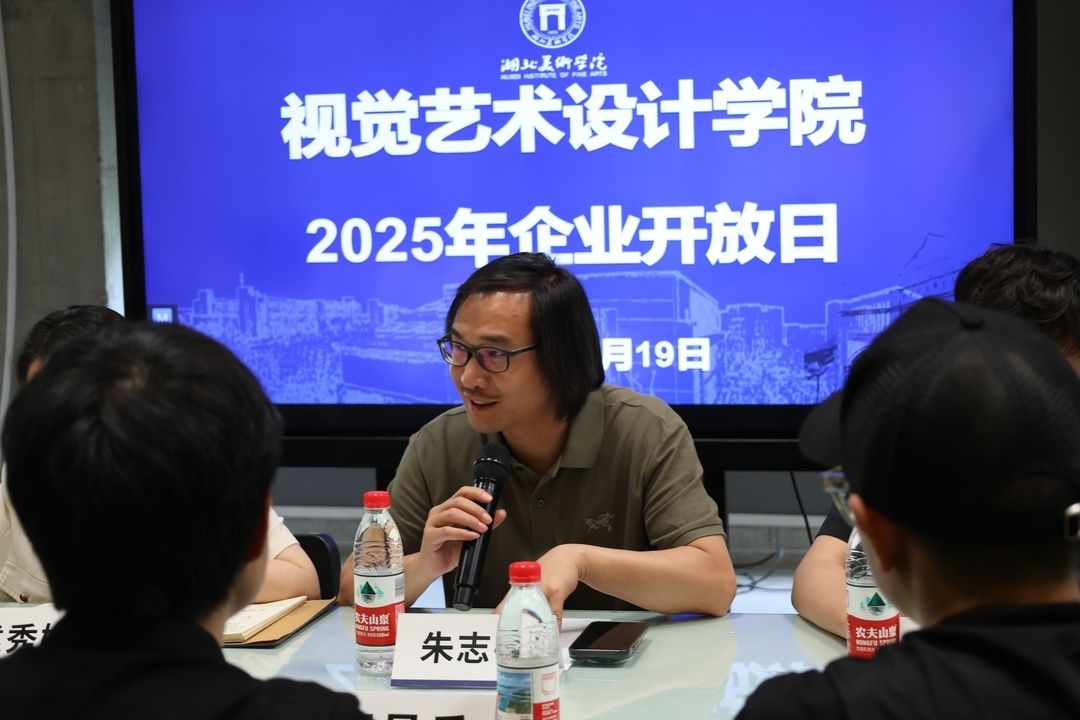 学院副院长朱志平向与会企业代表详细介绍了视觉艺术设计学院各专业方向人才培养概况。他提到,学院一直以来致力于培养具有创新思维和实践能力的高素质艺术设计人才,注重理论与实践相结合的教学模式。朱副院长还重点介绍了2025年本科生毕业展的基本情况,展示了学生们在视觉艺术设计领域的优秀成果,让企业代表们对学院的教学水平和学生的专业能力有了更直观的了解。