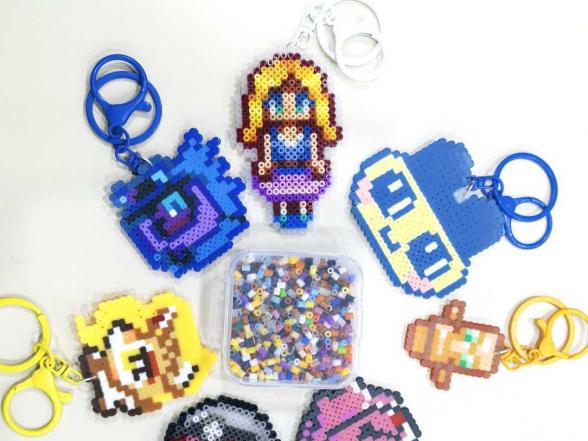 创作环节中,同学们围坐桌前,专注地将各色拼豆随心组合、创意拼搭,现场氛围轻松而愉悦。作品完成后,大家将其交给工作人员进行熨烫处理。随着熨斗缓缓加热,原本零散的拼豆逐渐融化融合、牢牢固定,图案与色彩愈发立体鲜明,一件件精致的可佩戴饰品就此诞生。