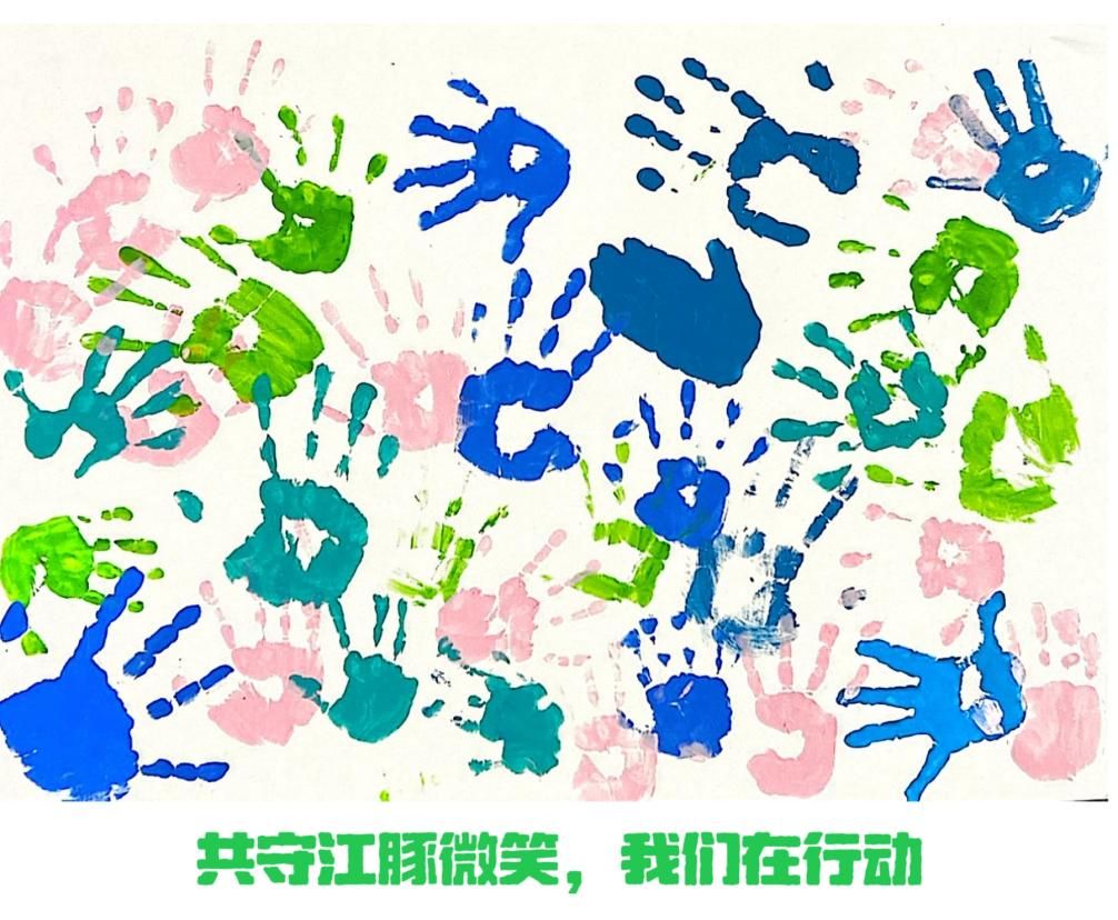 活动尾声,现场洋溢着成就的喜悦。孩子们自豪地展示着自己的作品,纯真的笑容与“微笑江豚”相映成趣。在志愿者的引导下,所有亲子家庭共同在一幅象征承诺的画布上按下五彩手印,并与作品合影留念。大家齐声许下诺言:“从认识一条江豚开始,我们共同守护未来的蔚蓝!”这一刻,守护长江精灵的责任感在大小参与者心中悄然生根。
