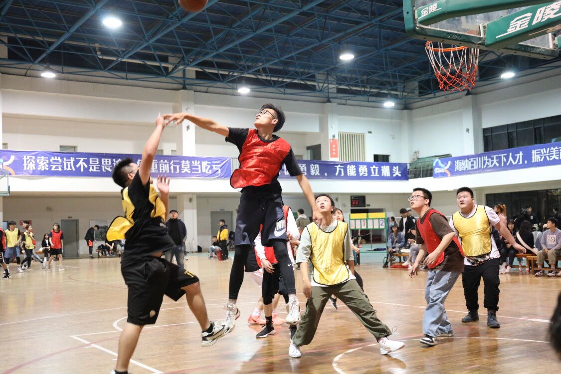 本次篮球赛共有八支队伍,他们分别是:奥利给队、对不队、我说的都队、都不会扣篮队、一一一队、大头队、累累的队、 树上鸟儿成双队。八支队伍分为A组和B组进行激烈对战。随着裁判一声令下篮球赛正式开始,球员们的扣球、运球动作一气呵成,记分板上的数字不断跳动,队伍之间的分数步步紧逼。现场观众们的呐喊助威声不断,为赛场上的球员们带来了鼓舞的力量。比赛期间设计系辅导员张志强老师一同为篮球队员加油打气,现场气氛热火朝天。经过激烈角逐,对不队和———队以小组第一的成绩分别出线;而都不会扣篮队和树上鸟儿成双队以小组第二的成绩顺利出线。这四支队伍将进入总决赛勇夺冠军之位。