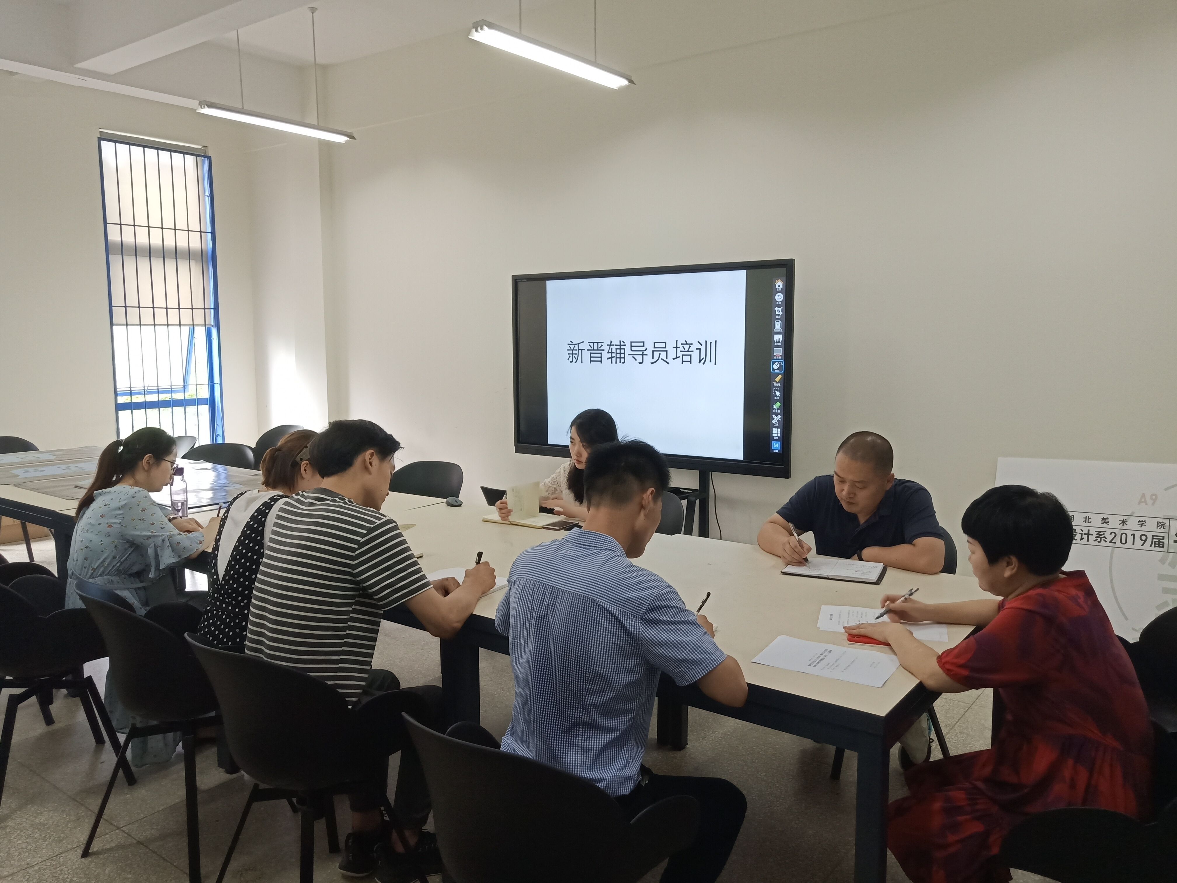 为帮助新进辅导员转变角色、明确岗位职责、提高工作实效,6月24日下午3点,设计系罗远红书记在A9教学楼108会议室给2019年6月新进辅导员进行了岗前培训,参加培训的人员为宋振泫、张志强、辛璐。另外,徐希峰书记、张吴涛主任、辅导员黄婧和熊珂也参与其中。