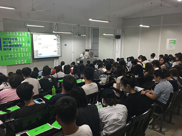 本次活动设计系成功邀请到深圳国际海报节组委会执行主席陈平波先生、深圳国际海报节项目执行人夏一波先生、杨军先生、唐浩先生围绕“设计改变未来”主题从《“实验性海报”引发的设计思考》、《谈品牌的节奏》、《与品牌伙伴一起成长》和《深圳国际海报节推介》四个方面展开近两个半小时的专题讲座,现场座无虚席,现场交流气氛热烈。陈平波先生希望同学们踊跃参加第二届深圳国际海报节学生组“生活”海报专题征集,“感悟生活,做设计观察者、体验者、实践者和聆听者”创作出优秀的海报作品!