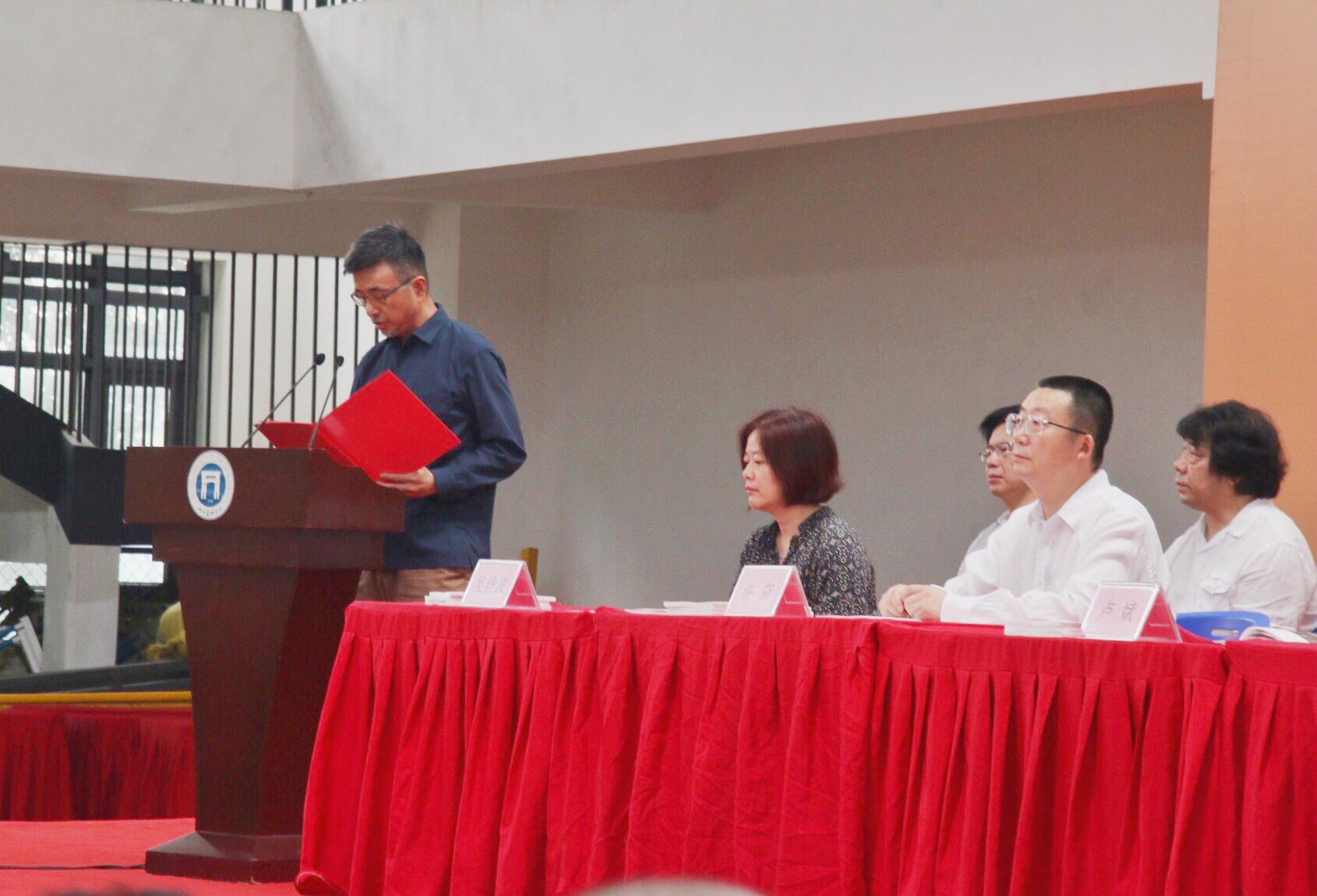 院长徐勇民发表了热情真诚的讲话,肯定了毕业生们精彩的毕业作品,他告诫“艺术”这门学问,应以思考引出对社会全景画面的关注。在社会生活与艺术生涯中,要成为一个有社会责任感与道德判断的人,并深切表达了他对莘莘学子的祝福与期望。其中,我系的李海平老师作为本系教师代表上台讲话。他表示人生中每一个终点都预示着新阶段的开始,要学会享受其中的过程,收获过去,展望未来。