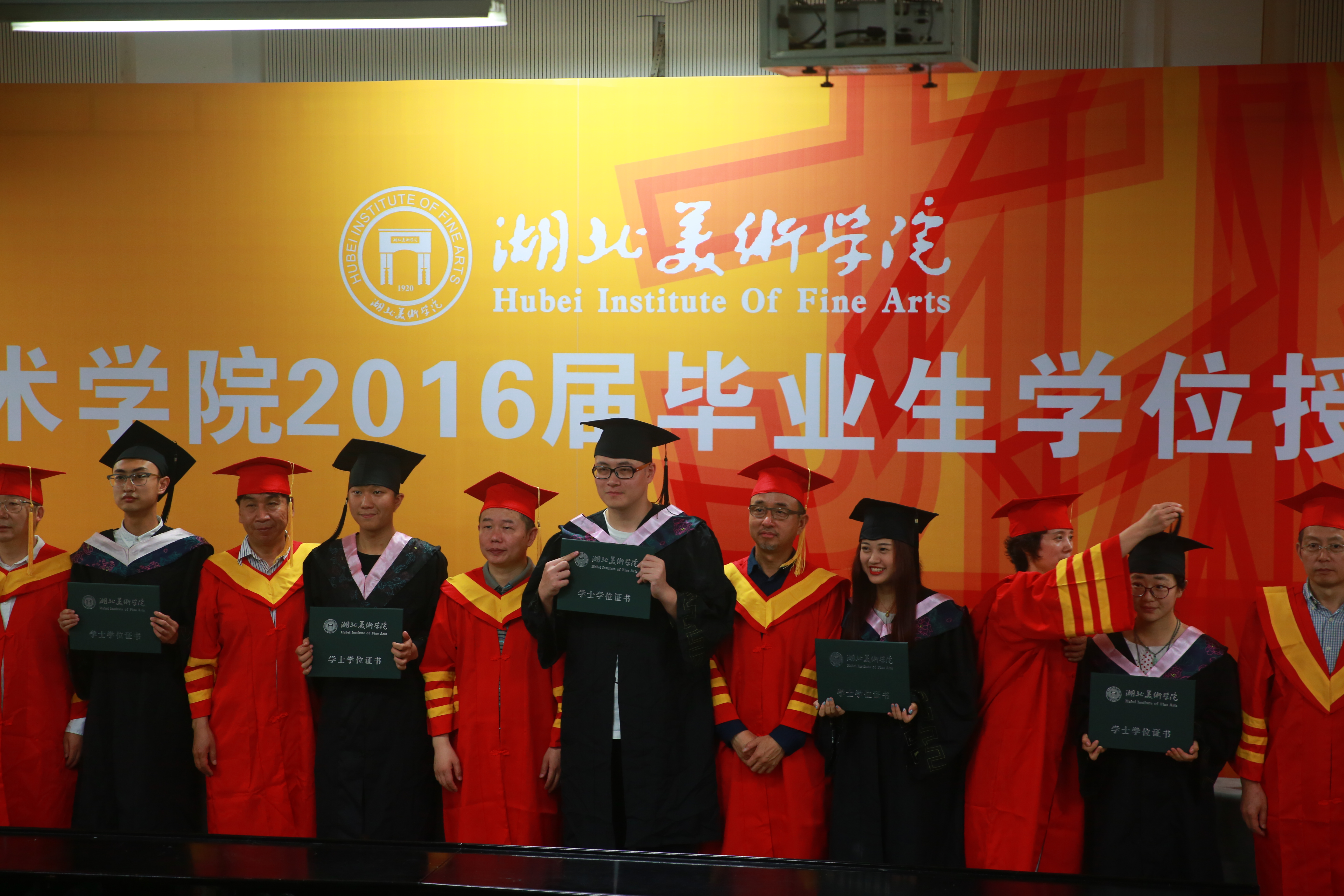 毕业典礼结束后,2016届毕业生学位授予仪式在A12教学楼105教室隆重举行。全体校领导身着导师服为应届本科生和研究生亲授学位证书,并亲切地与他们合影留念,喜悦的气氛持续高涨。