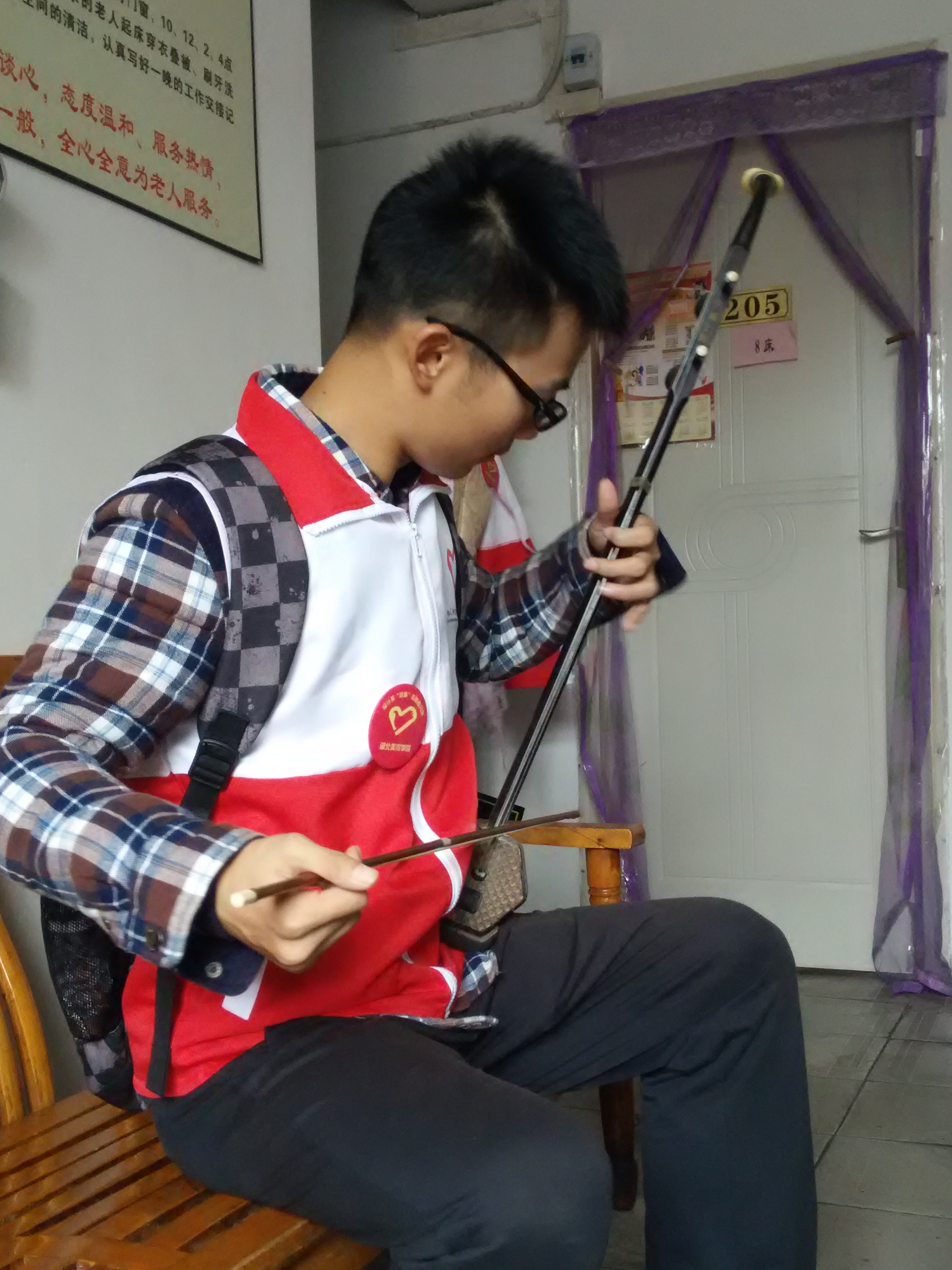 和老人下棋的场景甚是热闹:双方横马跳卒,車攻炮轰,你来我往,难解难分。在后厨忙碌的志愿者正在准备午饭,摘、洗、切、炒,有模有样,毫不马虎。午饭的间隙,志愿者们为老人们带来的才艺表演尤为精彩,一曲用二胡拉出的甜蜜蜜更是别有一番风味。轻快活泼的歌曲温暖了寒冷的冬日,也温暖了老人们孤寂的心灵。老人们对志愿者的热心奉献大加赞赏,工作人员也对我们的工作成果给予了高度肯定。
