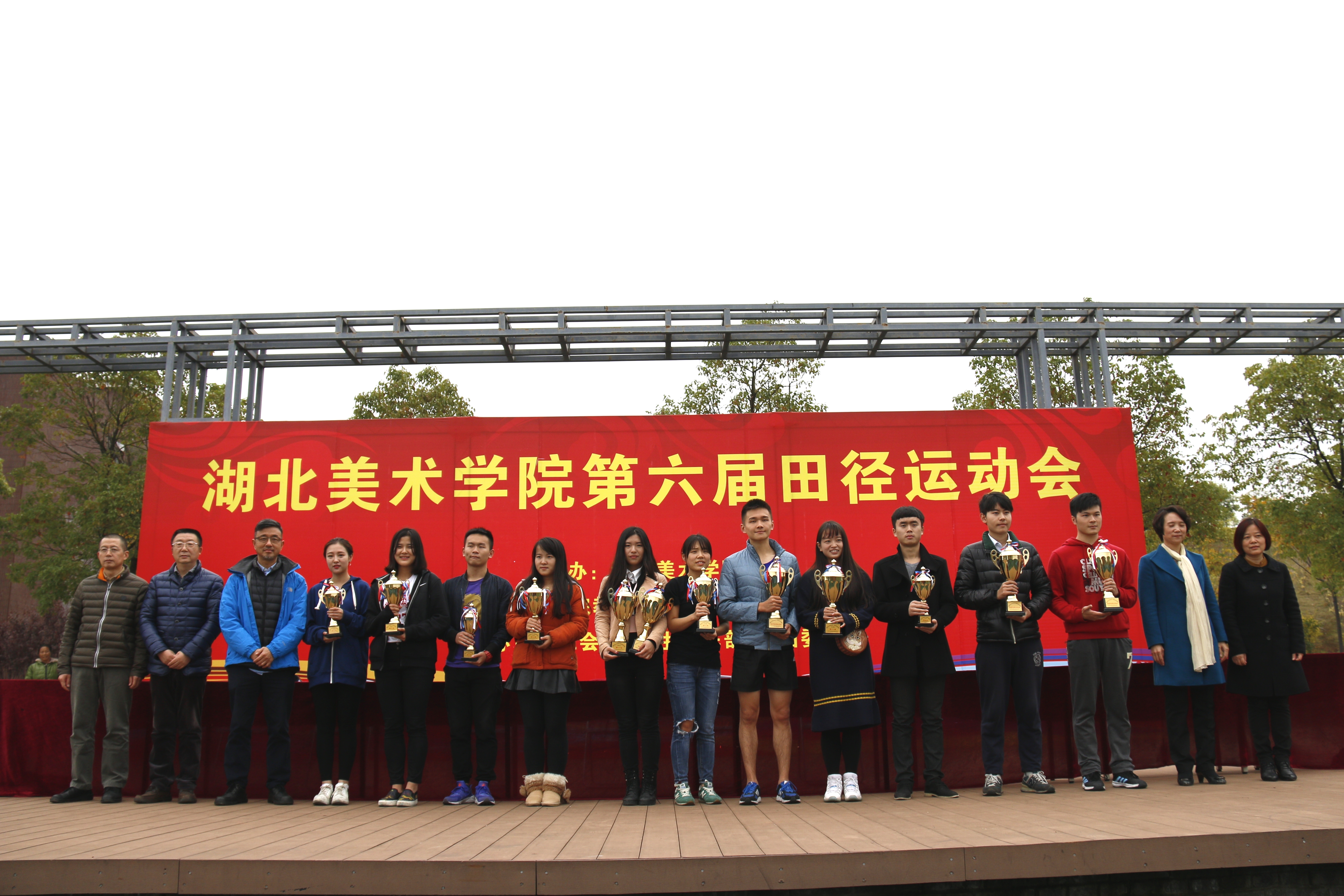 ——湖北美术学院第六届田径运动会圆满落幕 (通讯员:罗家俊 彭诗薇 摄影:曹钰峰)2015年11月13日至14日,为期两天的“湖北美术学院第六届田径运动会”伴着牛毛细雨顺利举行。院长徐勇民,副院长许奋等校领导参加开幕式,由院长徐勇民致开幕词并宣布湖北美术学院第六届田径运动会正式开始。在本次运动会中,设计系充分准备,全力拼搏,并最终获得女子团体总分第一和团体总分第一的好成绩。