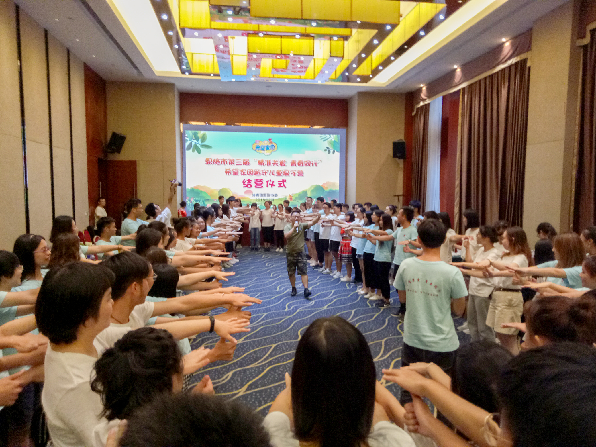 (通讯员:乔静怡 摄影:刘家辉)2018年7月31日10点30分,晨曦支教队伍告别托管中的孩子们坐车离开石灰窑。下午17时志愿者抵达恩施参,加由共青团恩施市委组织的第三届“精准关爱,青春同行”希望家园留守儿童夏令营结营活动。