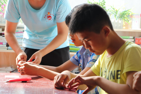 午休过后,辅导完作业志愿者进行了今天的主题日活动,手工课,由小鱼老师教大家折纸青蛙,每个孩子都有很强的动手能力,以美工活动为主题的主题日,主要锻炼折纸技能,通过了解和观察我们发现学生们的手工活动很少,折纸活动可以发展小盆友们的小手肌肉群,增强小盆友们动作的灵活性,在活动中促进手、眼、脑协调发展。折青蛙游戏是一个好玩的游戏,学生们在玩中身心放松、情绪愉快。在这个活动中,小青蛙和孩子们自己叠的千纸鹤还可以组合成一幅画面,她们亲手把自己的作品用来布置画面,是让人感到多么幸福和愉悦的事情!折出的不仅仅是小青蛙,更是在情感上的一次愈合。