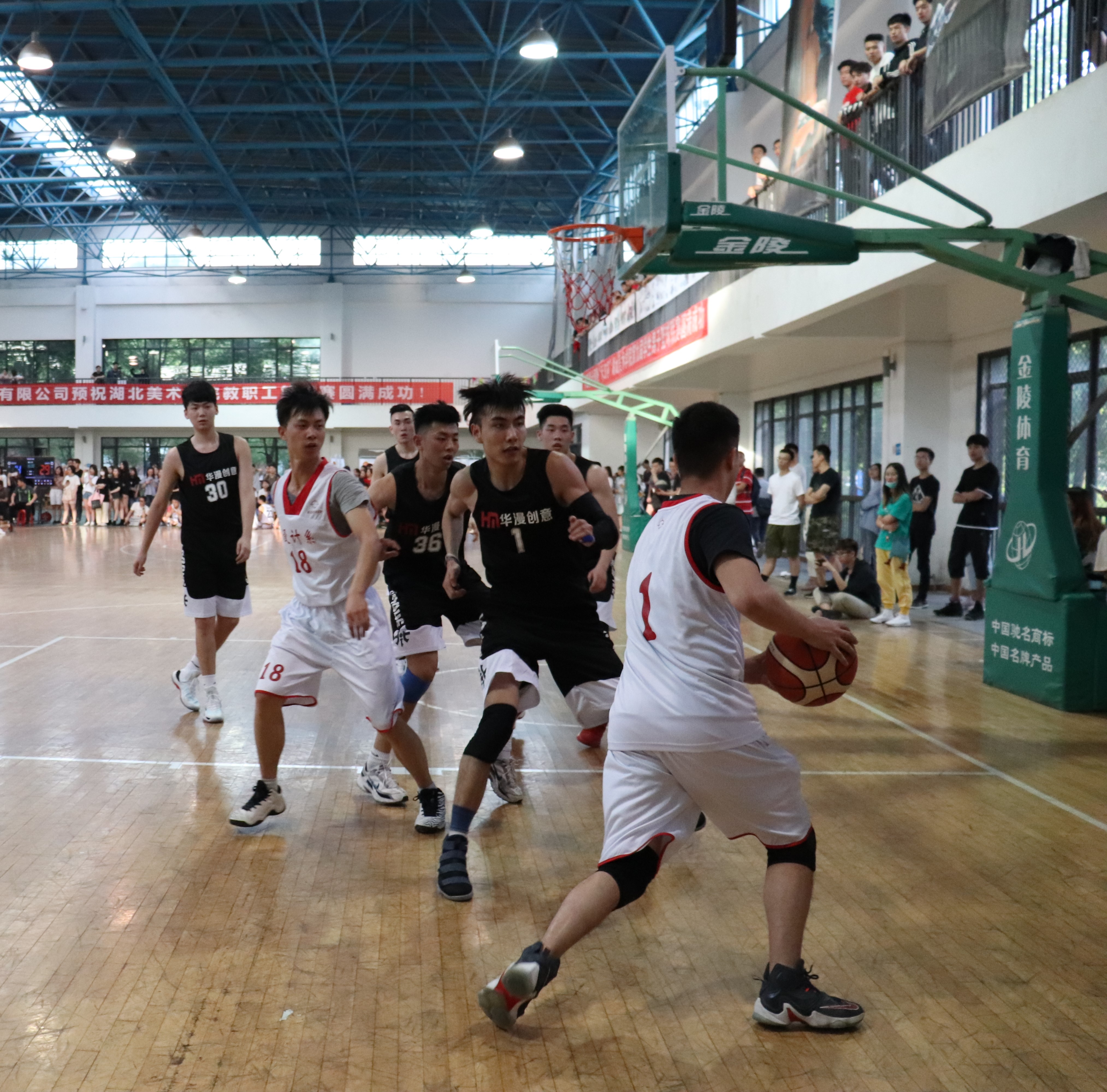 (通讯员:周莎莎 摄影:范明杨)2018年5月9日下午5点30分,湖北美术学院第九届篮球赛在藏龙岛校区体育馆拉开了大幕。设计系辅导员黄婧和熊珂老师亲临比赛现场,为球员们加油打气。设计系的第一场比赛对战服装系,双方短暂的热身后,比赛在裁判的鸣哨中正式开始。