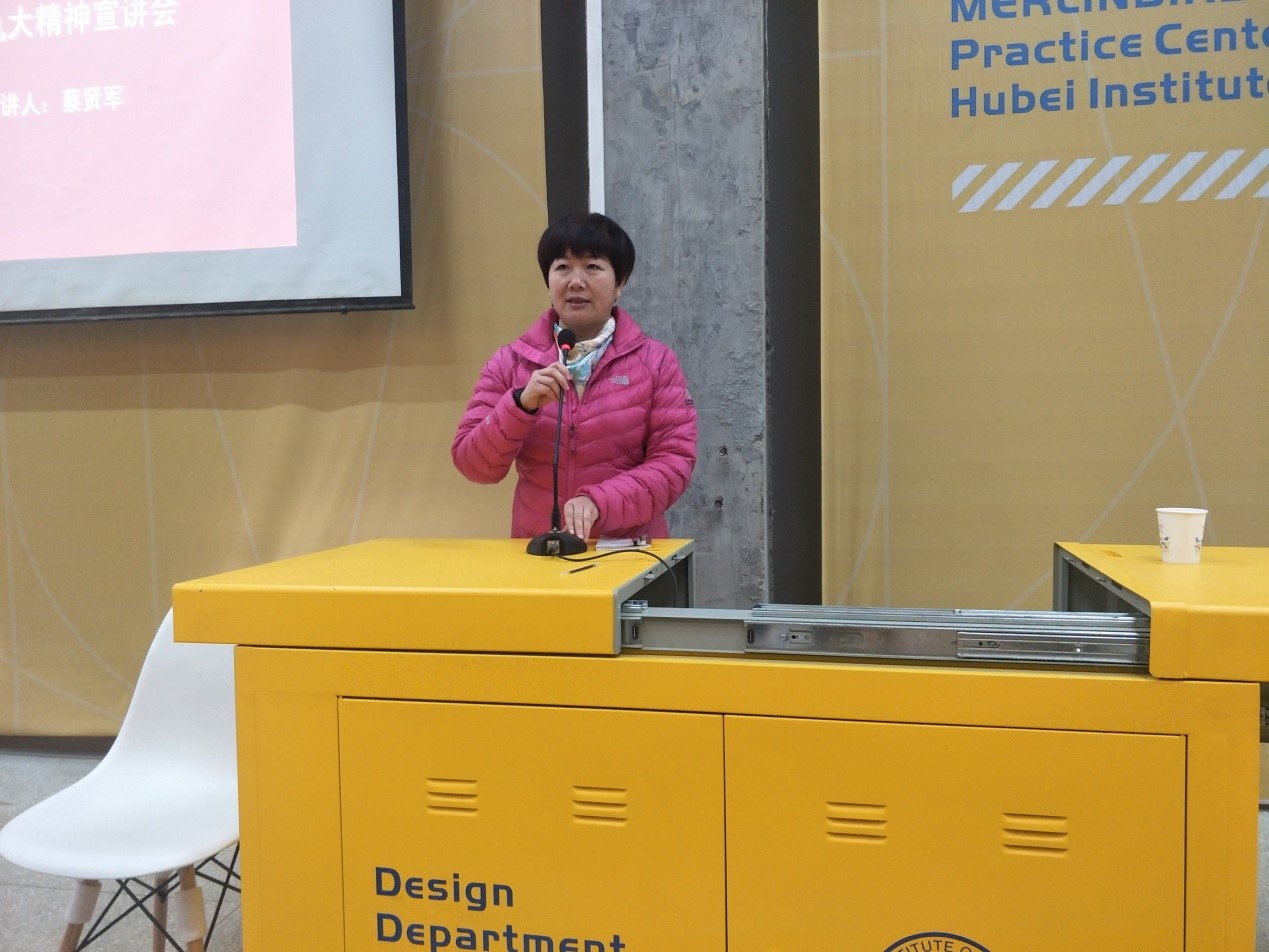 蔡贤军书记指出将大会精神与学习教育相结合的重要性,呼吁广大教师认真制定学习计划,深入到基层组织建设当中。然后,蔡贤军书记指出中国新的历史地位并且在对世界产生深刻的影响,应当关注实事,以此加强民族的归属感。最后,蔡贤军书记要求通过设计系官网,官方微信公众号,QQ群,张贴海报等方式全面传达十九大精神。