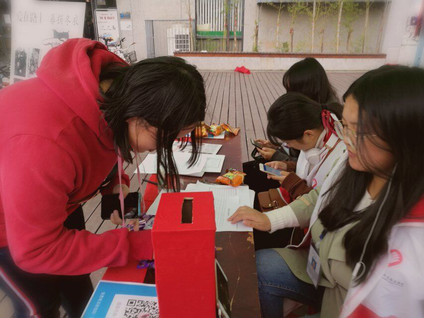 自11月12日起,晨曦志愿者分队开始进行活动前期策划和宣传。15日正式于食堂及学府平价超市门口进行摆摊守点,募集冬衣。活动持续两天,先后收到了大量来自各系部各专业老师、同学们的爱心冬衣和善款。活动积极的性质感染了广大师生和群众,更吸引了外校老师的热心募捐。大家纷纷拿出自己闲置的衣物为援藏的包裹增加厚度。衣服虽少,但温情如潮,只要人人都献出一点爱,世界将少一片严寒。