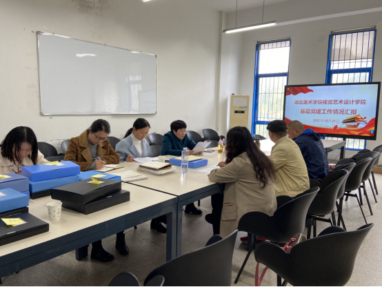 2021年10月21日,湖北美术学院党委常委、组织部长朱丽莎、党委组织部副部长刘锦秋一行到视觉艺术设计学院开展全面从严治党情况调研,实地查看了视觉艺术设计学院党建工作资料,听取了学院领导的相关汇报,并提出了工作要求。