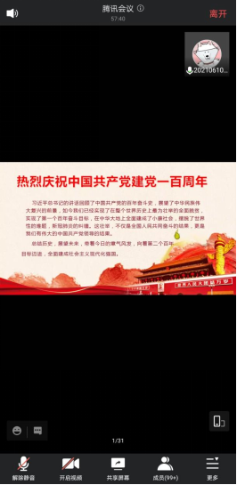 2021年9月13日下午2时,在线上腾讯会议,视觉艺术设计学院分团委与各班班委组织开展了学习贯彻习近平“七一”重要讲话精神专题学习会。视觉艺术设计学院辛璐老师与院系全体新生及分团委同学一道参加了本次会议。