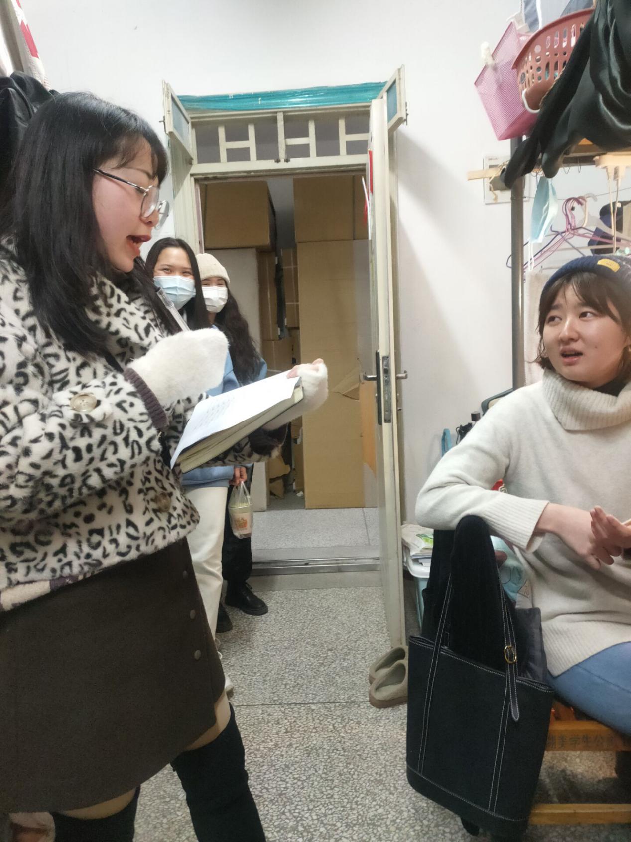 为落实学校关于“寝室环境以旧换新,宣讲寝室文化文明贴士”要求,我系于2020年11月30日晚,由辅导员辛璐带领部分学生会干部前往一栋女生宿舍开展走寝工作。
