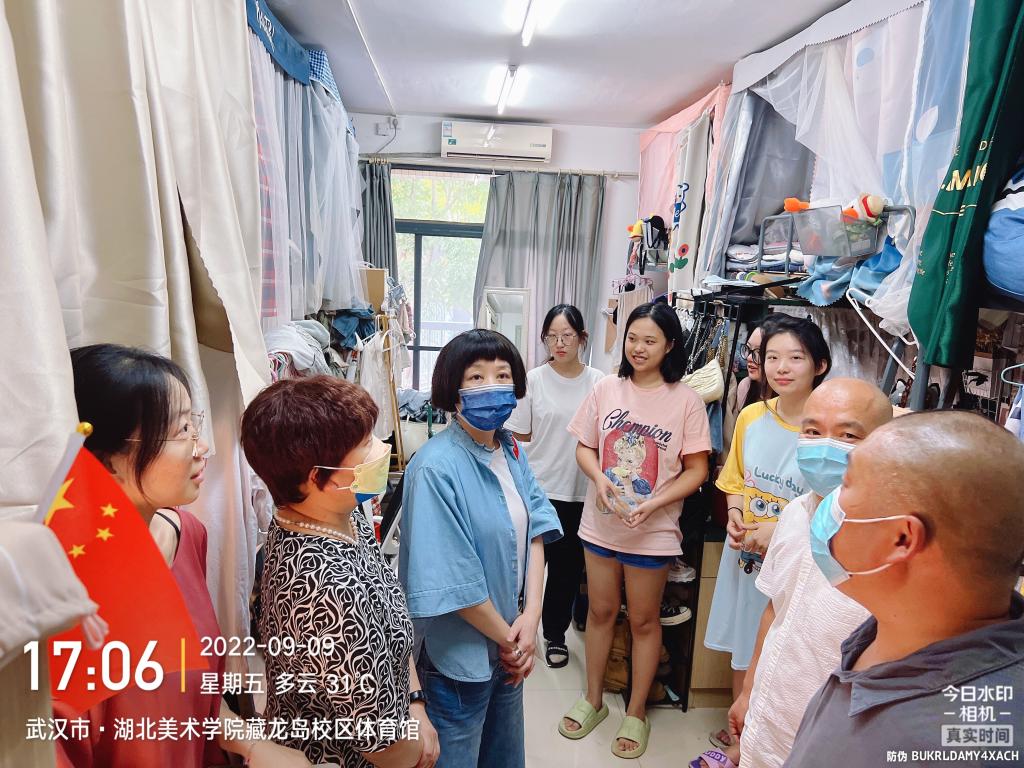 金秋送爽,丹桂飘香,中国传统中秋佳节是阖家团圆的日子。但受新冠疫情的影响,为确保师生健康安全,学校实行封闭式管理。为让在校师生感受节日的温馨快乐,体会视觉艺术设计学院大家庭的温暖,9月9日,学院党委书记罗远红、院长吴萍、党委副书记徐希锋、副院长王灵毅走访慰问了在校学生,学院的教师代表和全体辅导员参加了此次活动。