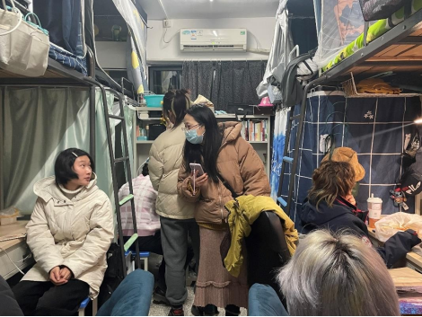 为落实学生开学到校的情况,我院于 2022 年 2 月 20 日晚上 7 点,由辅导员张志强老师、辛璐老师带领部分学生干部对视觉艺术设计学院全体学生宿舍进行分批查寝。