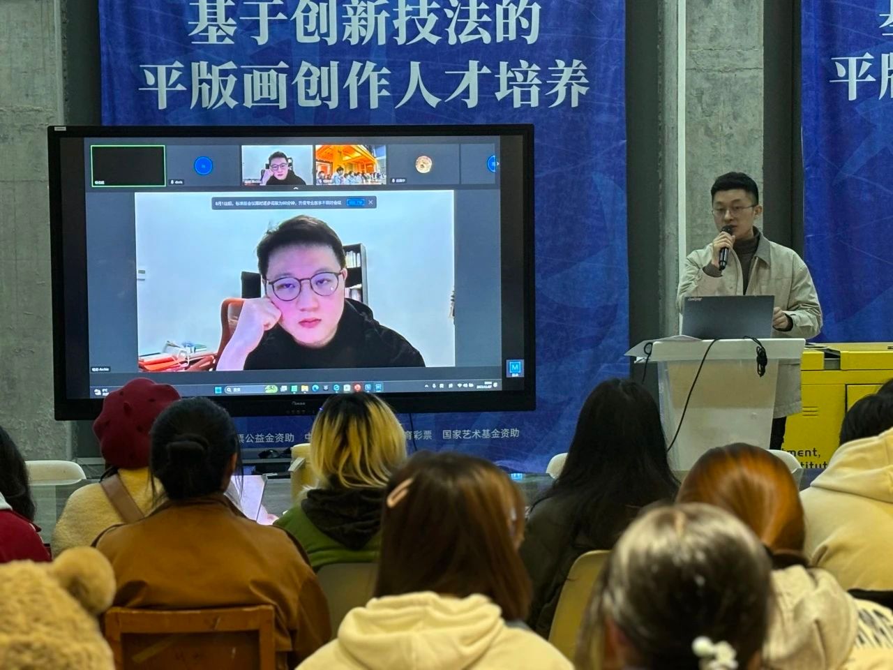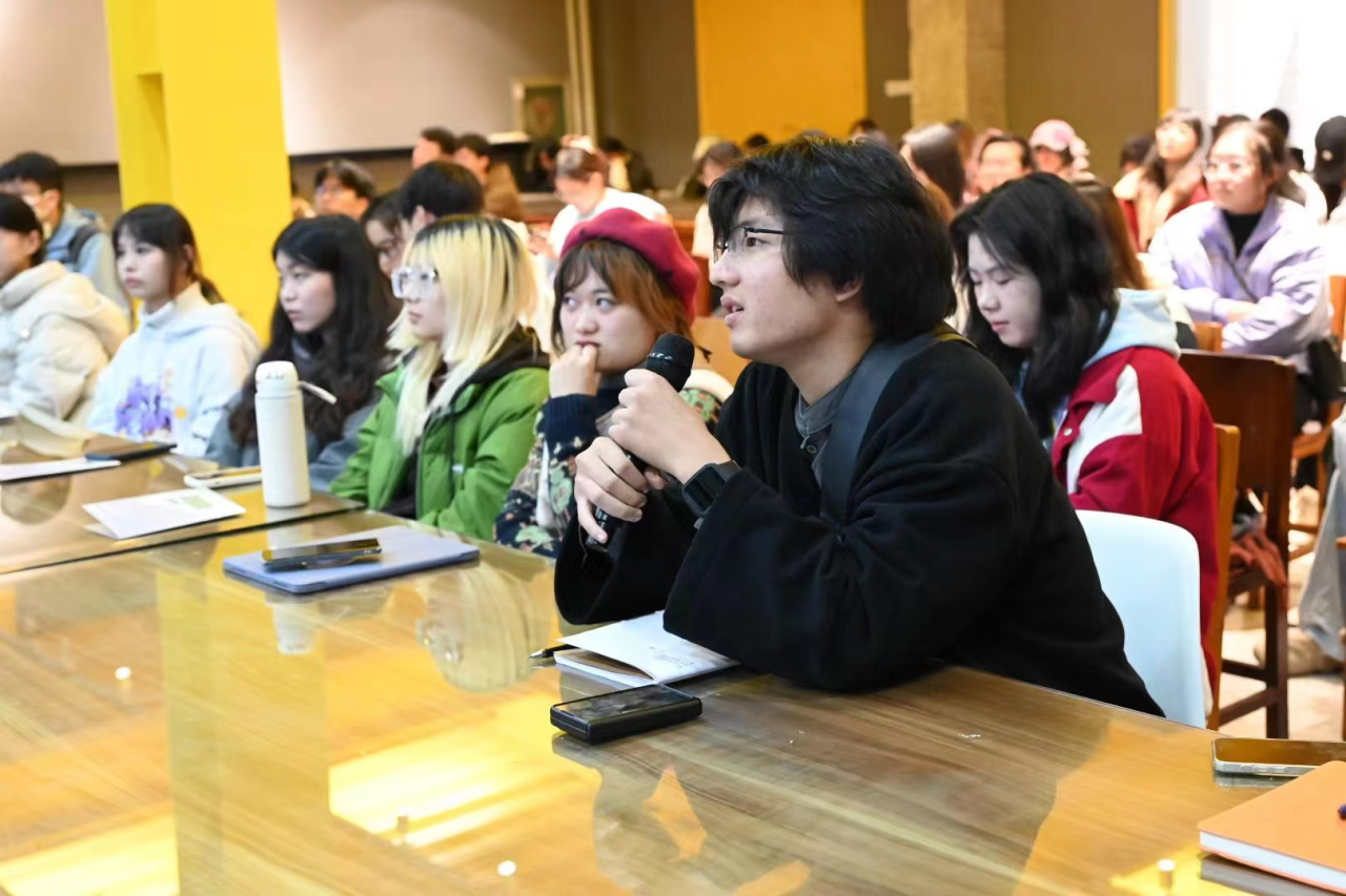 黄晨怡学姐从简历制作、作品集、面试技巧三个方面进行分享,通过讲解作品集制作、求职面试等方面的宝贵经验,为在场同学们带来了全新的求职理念和实用技能。 喻岩学长结合自身求职经历,从艺术行业实际情况、艺术与商业关系等方面与现场同学展开讨论,同学们积极参与,整个交流过程气氛轻松愉悦。会议最后,由辅导员张志强老师对此次分享会进行总结。首先张志强老师代表在场各位向优秀校友们表达了由衷的感谢,其次向同学们提出了两点建议,一是树立明确的求职目标、夯实专业基础、培养好的学习习惯。二是积极参加专业实践,不断提高专业水平,提升就业竞争力。
