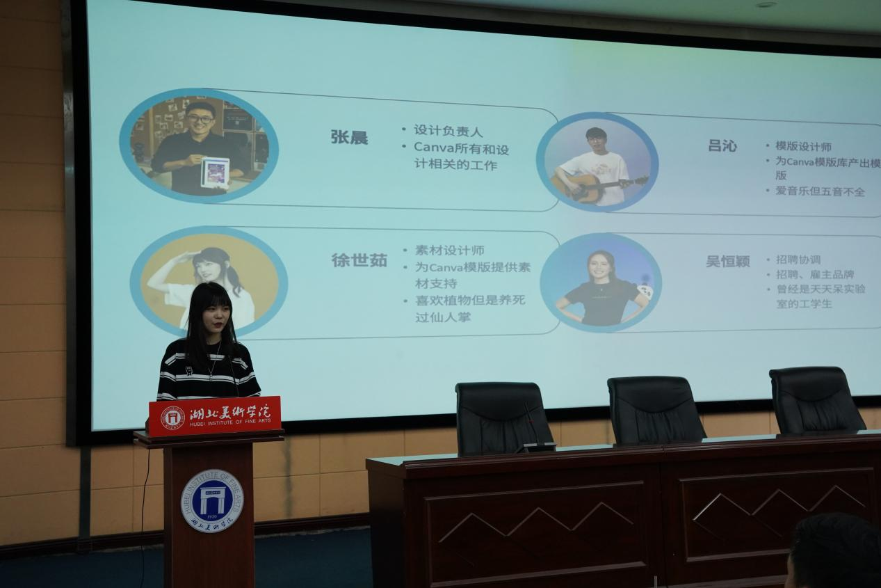 随后,canva可画团队在介绍完公司业务、文化、福利以及办公环境后,设计负责人张晨以资深面试官第一视角为毕业生们分享作品集的制作技巧;招聘HR吴恒颖告诉同学们HR如何筛选简历并分享简历吸睛技巧;模版设计师、2015级校友吕沁为同学们介绍如何用Canva制作简历和作品集;素材设计师、2018级校友徐世茹为毕业生们分享简历制作技巧以及真实的求职经验。可画团队精心准备,用心分享,为大家提供就业思路,引导毕业生们扎实做好求职准备。