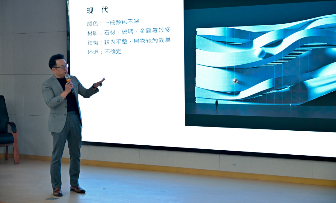 讲座上,刘曦以“视觉引领、数字驱动、服务赋能”为核心,结合企业实践,系统解析了 3D Mapping 技术在文旅、会展等领域的创新应用。他通过丰富的行业专业知识介绍与案例解读,系统讲述了数字视觉艺术从创意构思到技术实现的完整流程,并针对行业热点问题与现场的同学们展开了热烈讨论。