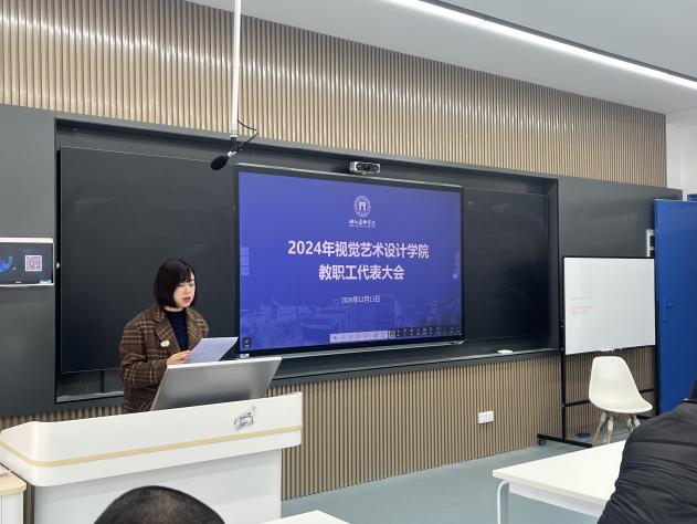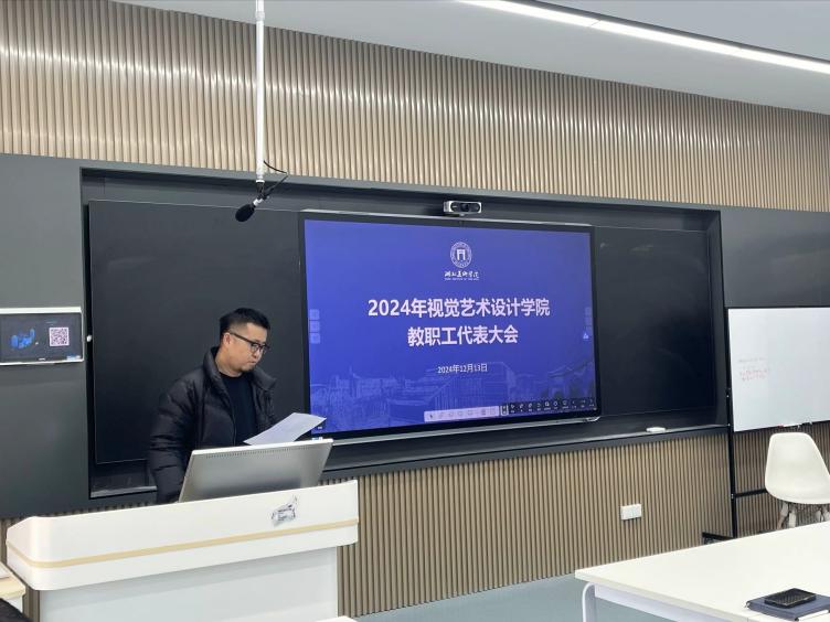 2024年12月13日中午,视觉艺术设计学院在A9-206教室召开2024年度教职工大会。学院领导班子及全体教职工参加会议,会议由学院工会主席袁秀娟同志主持。