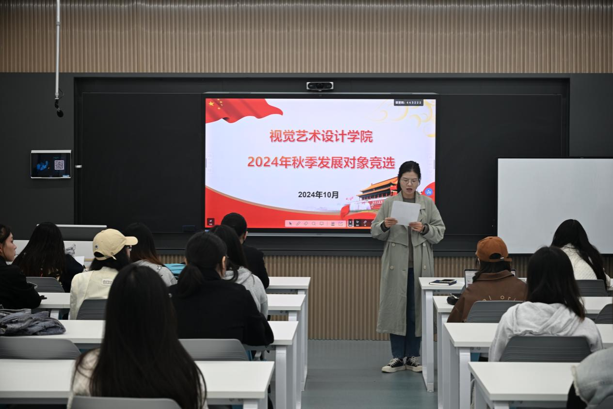 为发展与壮大党员队伍,增强党组织活力,做好基层党组织的组织建设工作,视觉艺术设计学院于2024年10月22日下午,在A9-206教室开展2024年秋季入党发展对象竞选。本次大会由辅导员方玲珠老师担任主持,辅导员唐瑜琦老师、各学生党支部书记及支委出席本次竞选会议,各年级入党积极分子参加本次会议。