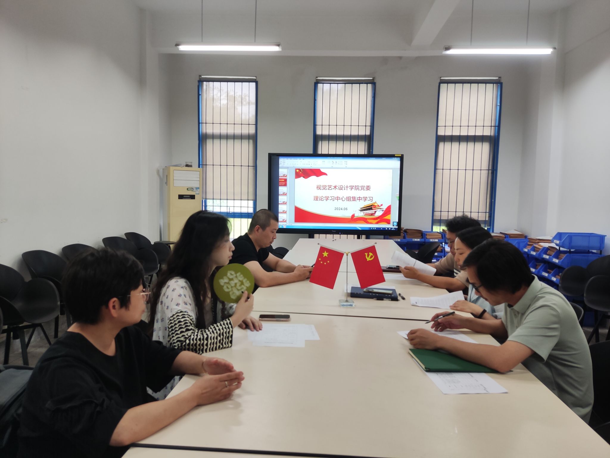2024年6月25日下午,视觉艺术设计学院党委理论学习中心组在A9-108教室开展6月集中学习,学院党委书记袁秀娟主持学习,全体中心组成员参加学习。