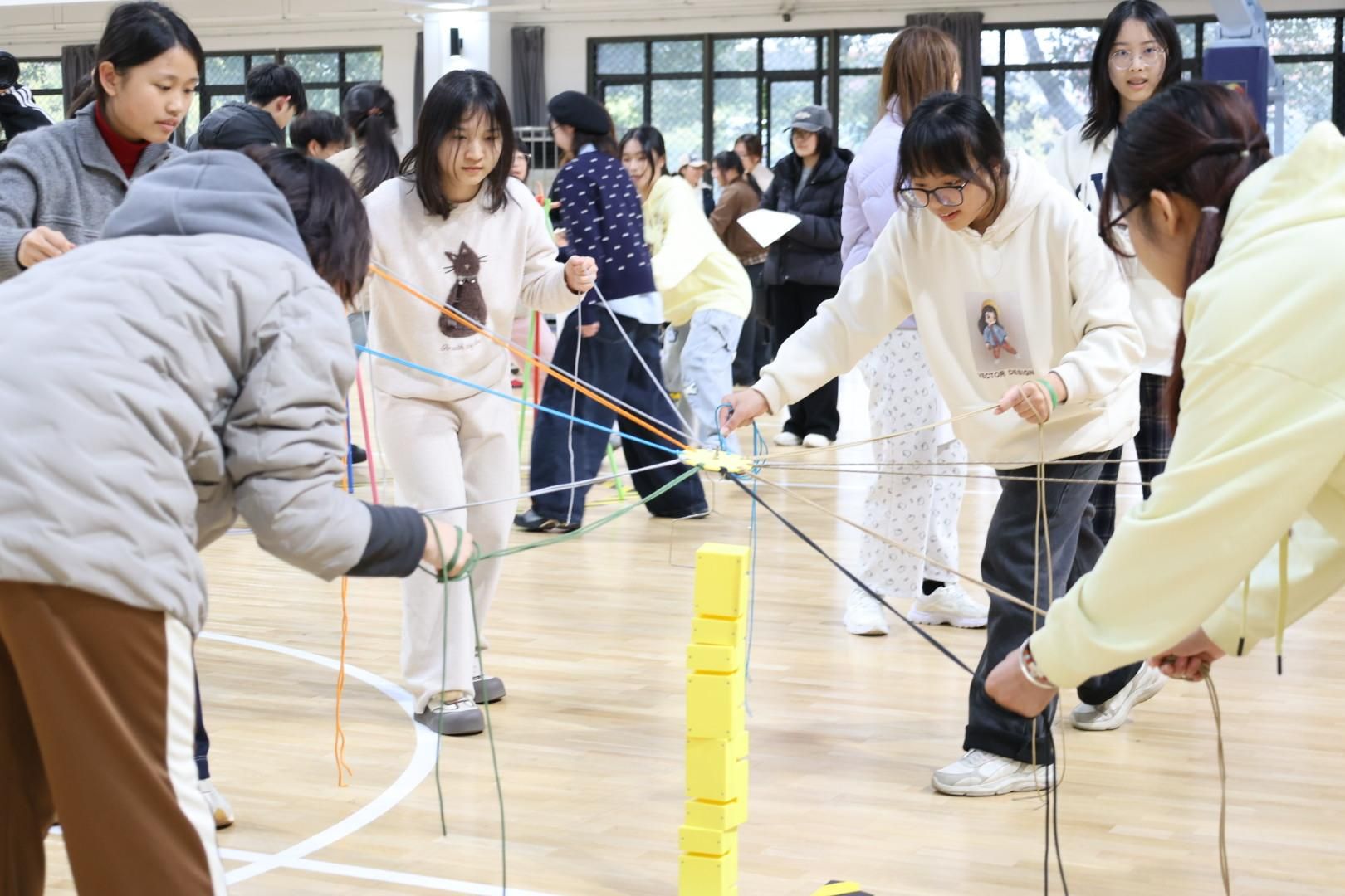本届趣味运动会设置了“珠行万里”“一圈到底”“不倒森林”“合力建塔”等多个团体趣味项目,同时融入个人趣味挑战,兼顾协作性与竞技性。赛场上,同学们凝心聚力、配合默契,在接力传递与策略协作中展现出强烈的集体归属感与团队凝聚力。现场欢呼声此起彼伏,紧张激烈与欢声笑语交织,充分彰显了同学们朝气蓬勃、昂扬向上的精神风貌。
