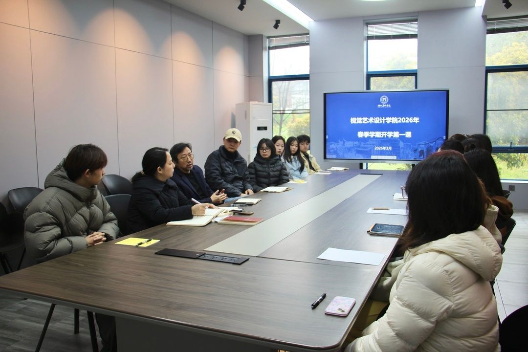3月20日上午,湖北美术学院副校长张炼教授在A9教学楼108会议室为视觉艺术设计学院学生组织骨干讲授春季学期“开学第一课”。视觉艺术设计学院党委书记袁秀娟及教师代表共同参加。