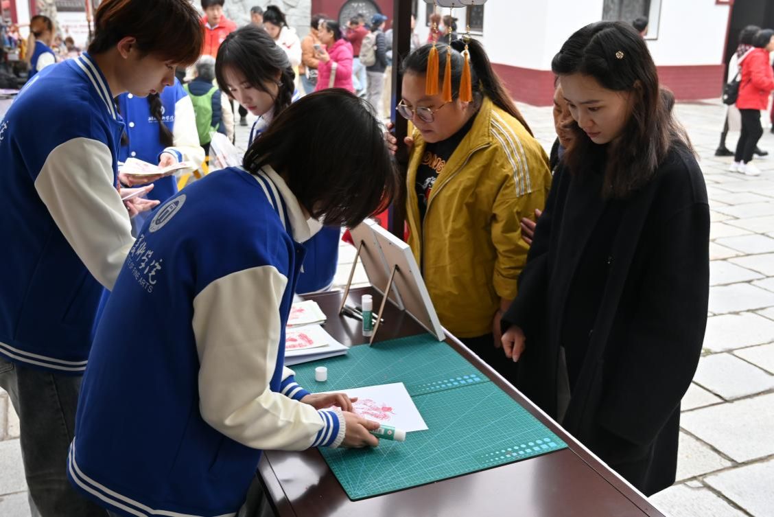 晴川阁分会场上,学院精心展出以“总体国家安全观”为主题创作的纸雕艺术作品,将抽象的安全理念转化为可触摸、可感知的艺术载体;同时设置了互动体验区,邀请市民游客与嘉宾亲身参与纸雕制作,在动手实践中深刻感悟国家安全与个体幸福、社会发展、国家兴盛的紧密关联。