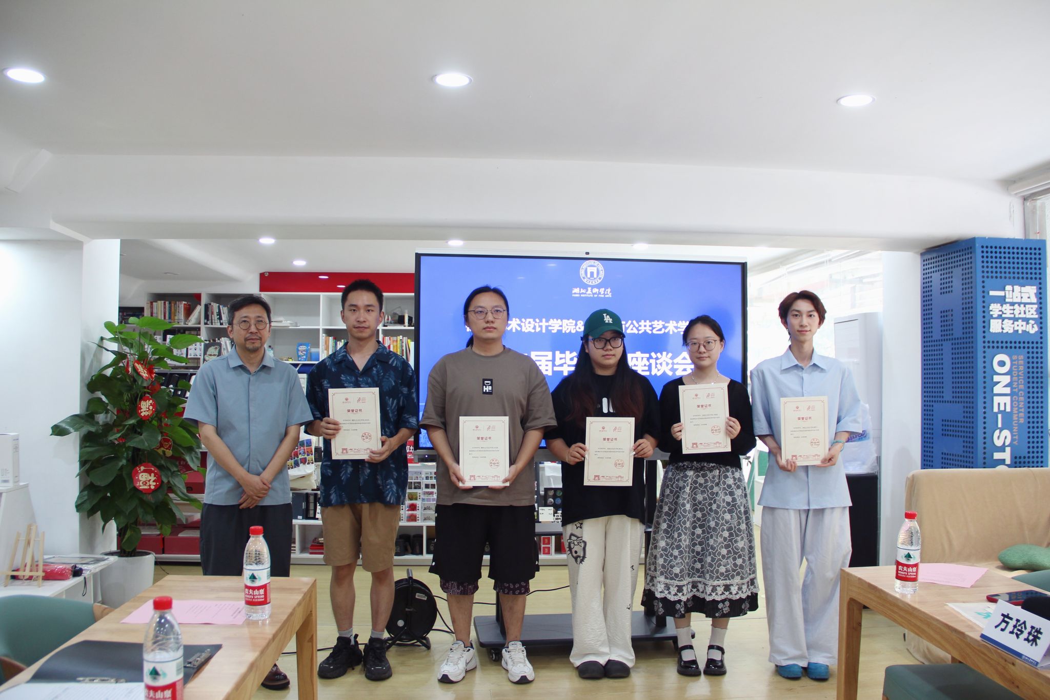 五位来自不同专业背景的学生代表依次作交流发言。他们深情回顾了在湖美的求学历程和成长感悟,发言饱含对母校的深厚情谊与对艺术事业的坚定追求,现场气氛真挚热烈。