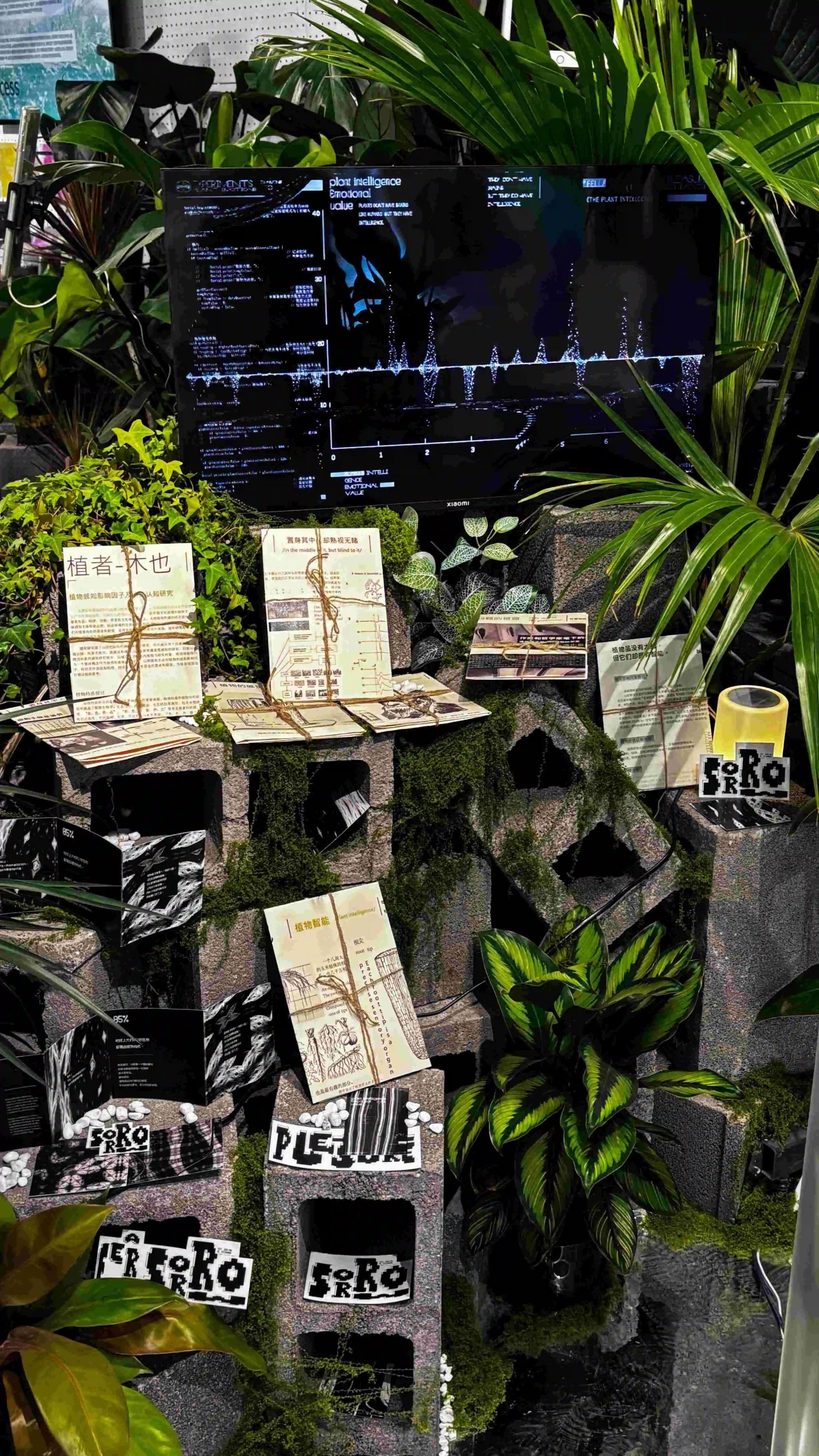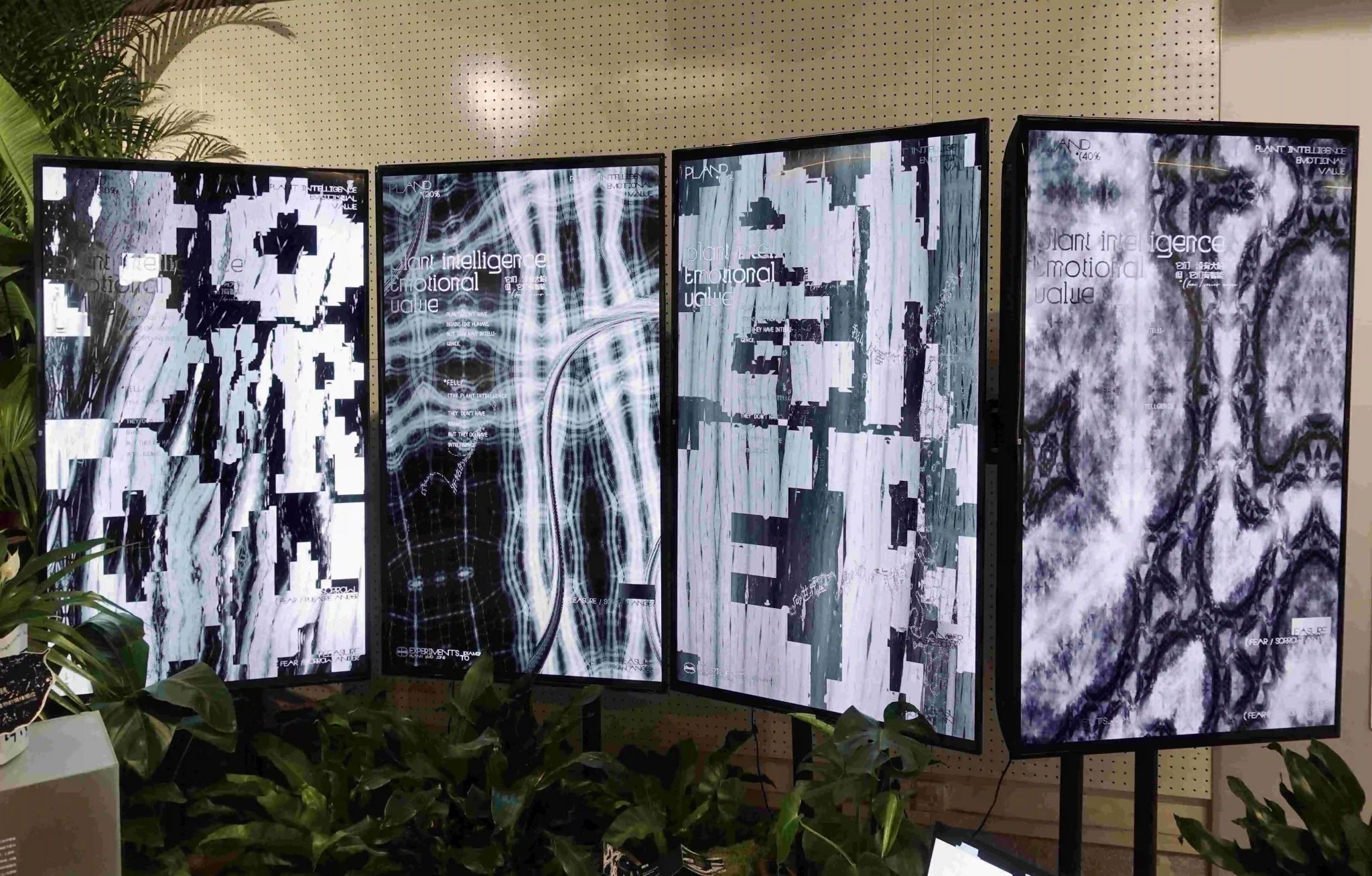 植物养育地球上亿年,人类仅是地球上的平等参与者而非特殊中心。万物生长,皆有情绪态度,植物绝不是与周遭无任何信息交换的孤独存在。作品基于植物学、人类学、哲学的相关观念研究,利用植物叶脉、细胞的视觉转译,对植物情绪进行设计表达,提醒人们重视与自然之间的道德关系,尊重生物多样性,反思、批判、走出人类中心主义,以更加平等包容的心态对待自然世界。