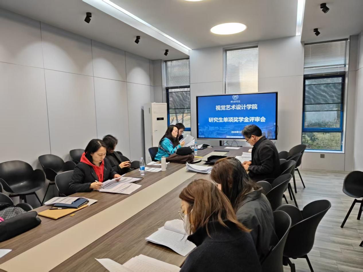 2026年1月12日下午,视觉艺术设计学院2025年度研究生单项奖学金评审会议在学院108会议室顺利举行。学院研究生单项奖学金评审委员会全体成员出席会议,秉持“公开、公平、公正、择优”原则,对申请学术创新、艺术...