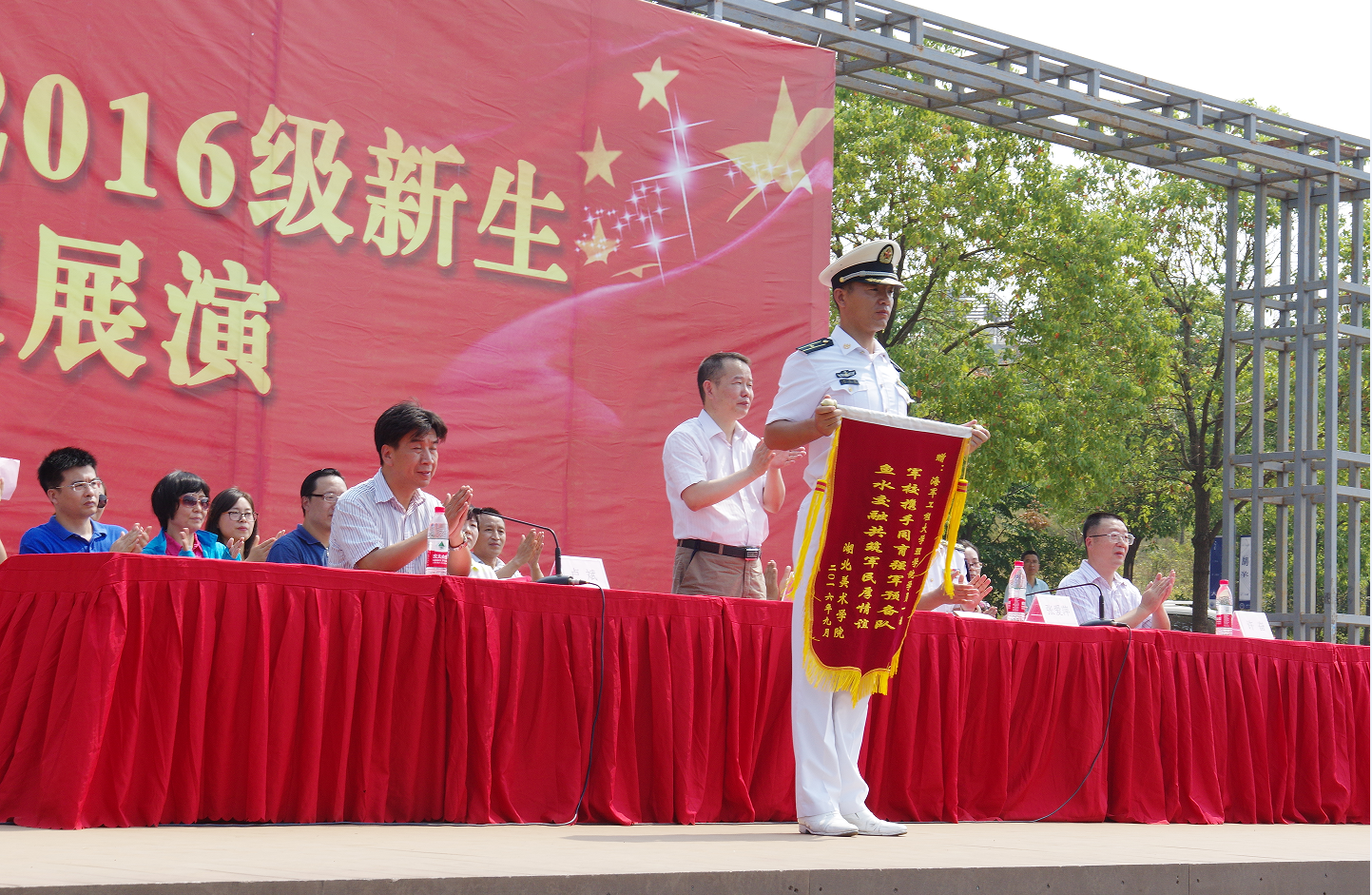——湖北美术学院2016级新生军训汇报展演圆满完成 (通讯员:彭诗薇 摄影:彭诗薇)看!列队方正;听!口号嘹亮。