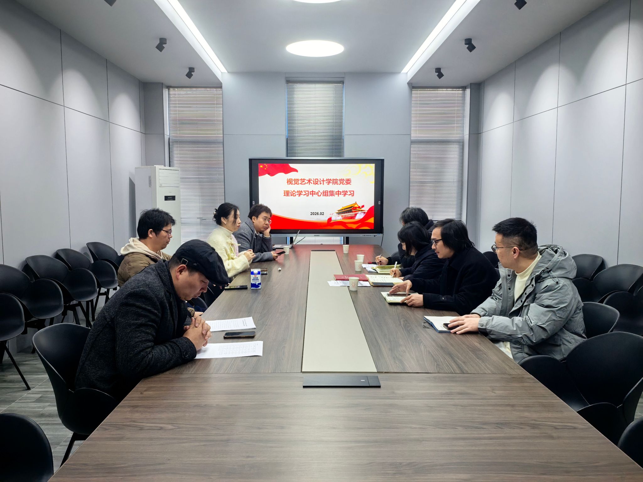 2月27日上午,视觉艺术设计学院在A9-108会议室召开2026年2月党委理论学习中心组集中学习会。学院党委书记袁秀娟主持会议,学院党委理论学习中心组全体成员参加学习。会议采取领学与研讨相结合的方式。学院领导班...
