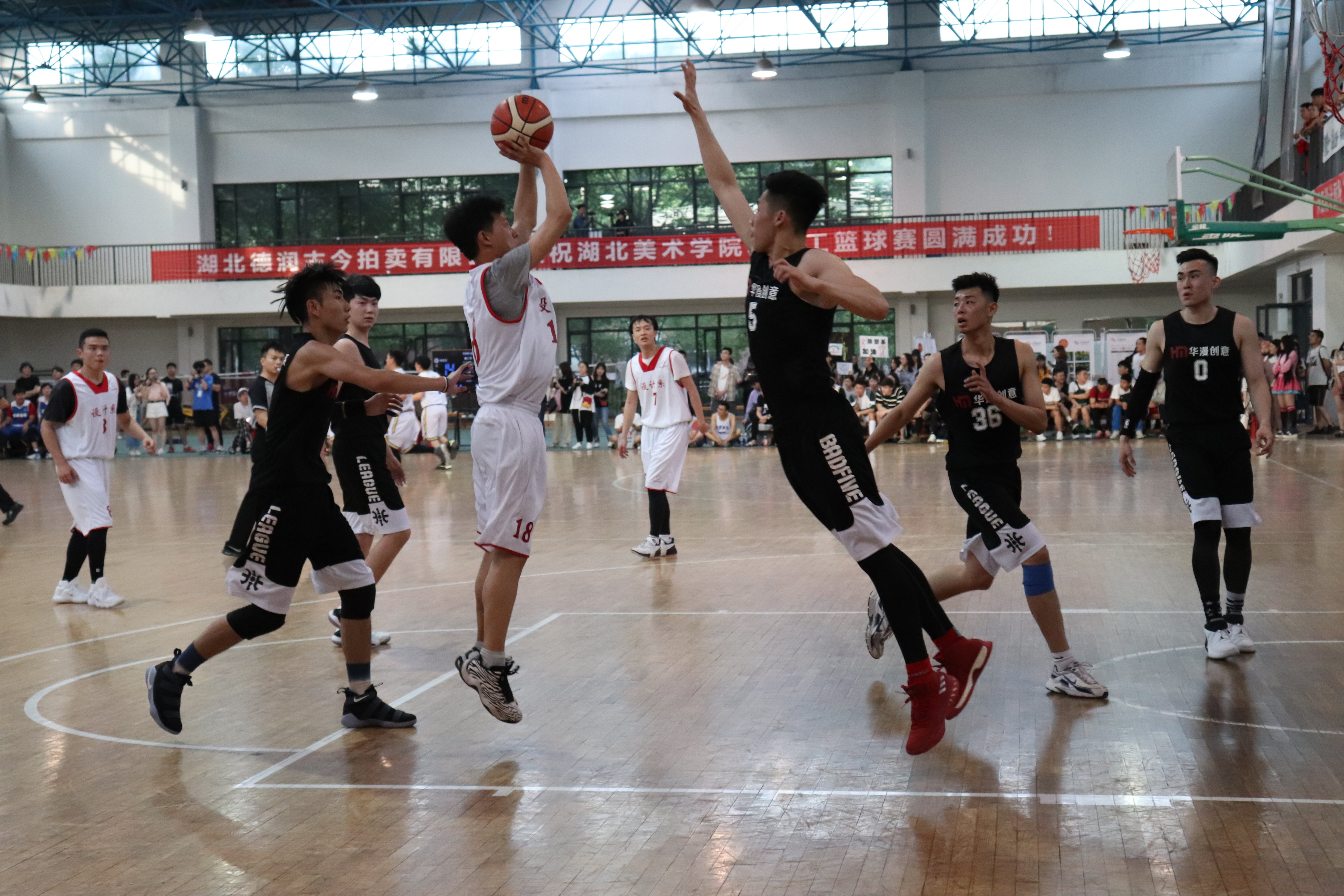——第一场篮球赛设计系对战服装系 (通讯员:周莎莎 摄影:范明杨)2018年5月9日下午5点30分,湖北美术学院第九届篮球赛在藏龙岛校区体育馆拉开了大幕。